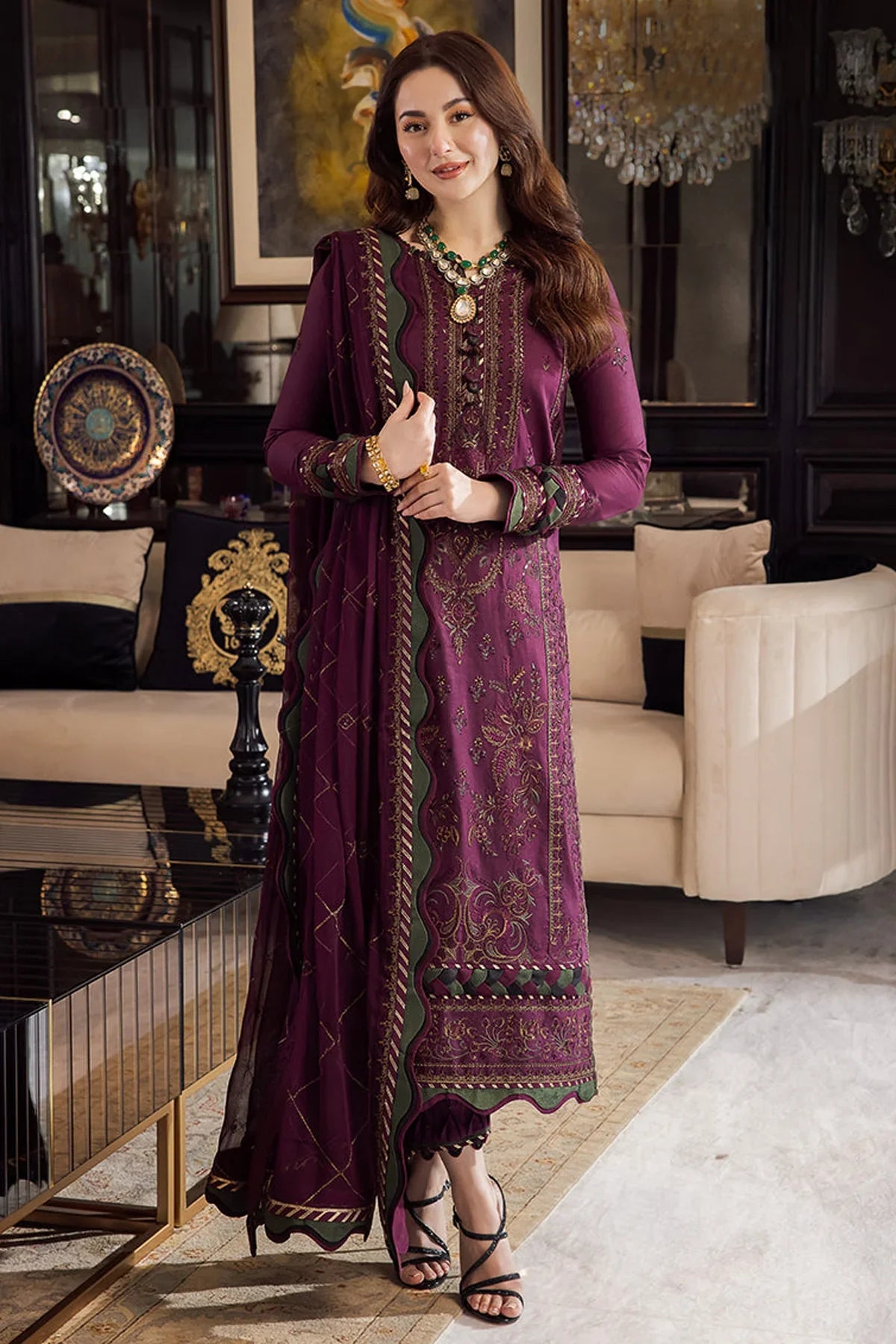 ASIM JOFA - 3PC DHANAK EMBROIDERED SHIRT WITH DHANAK EMBROIDERED DUPATTA AND TROUSER - HZU2426