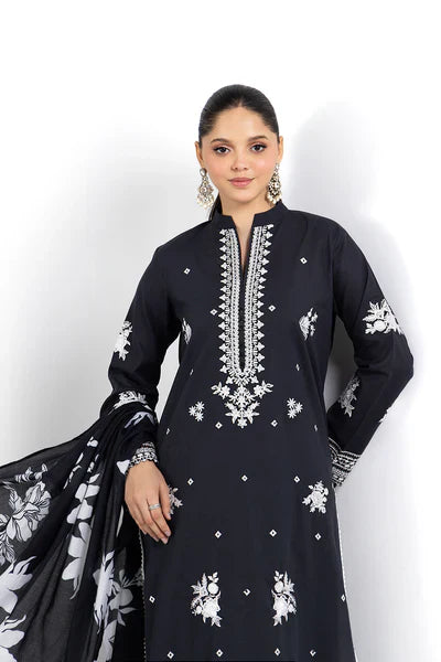 BAREEZE - 3PC DHANAK EMBROIDERED SHIRT WITH TWILL PRINTED SHAWL AND TROUSER - HZG1787