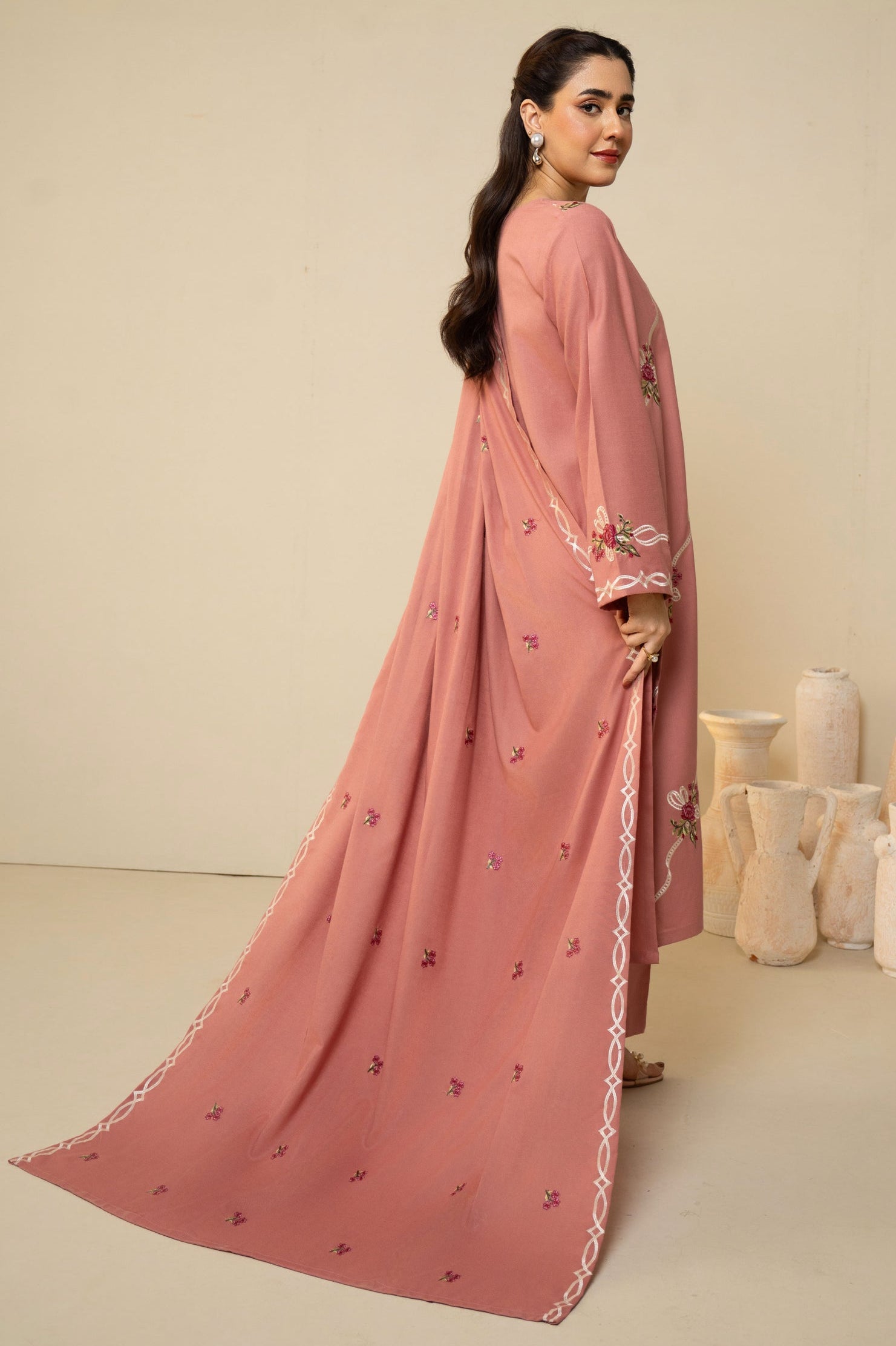 Dhanak Embroidered Shirt Dhanak Embroidered Sleeves Dhanak Dyed Back Dhanak Embroidered Trouser Unstitched 2PC Dress