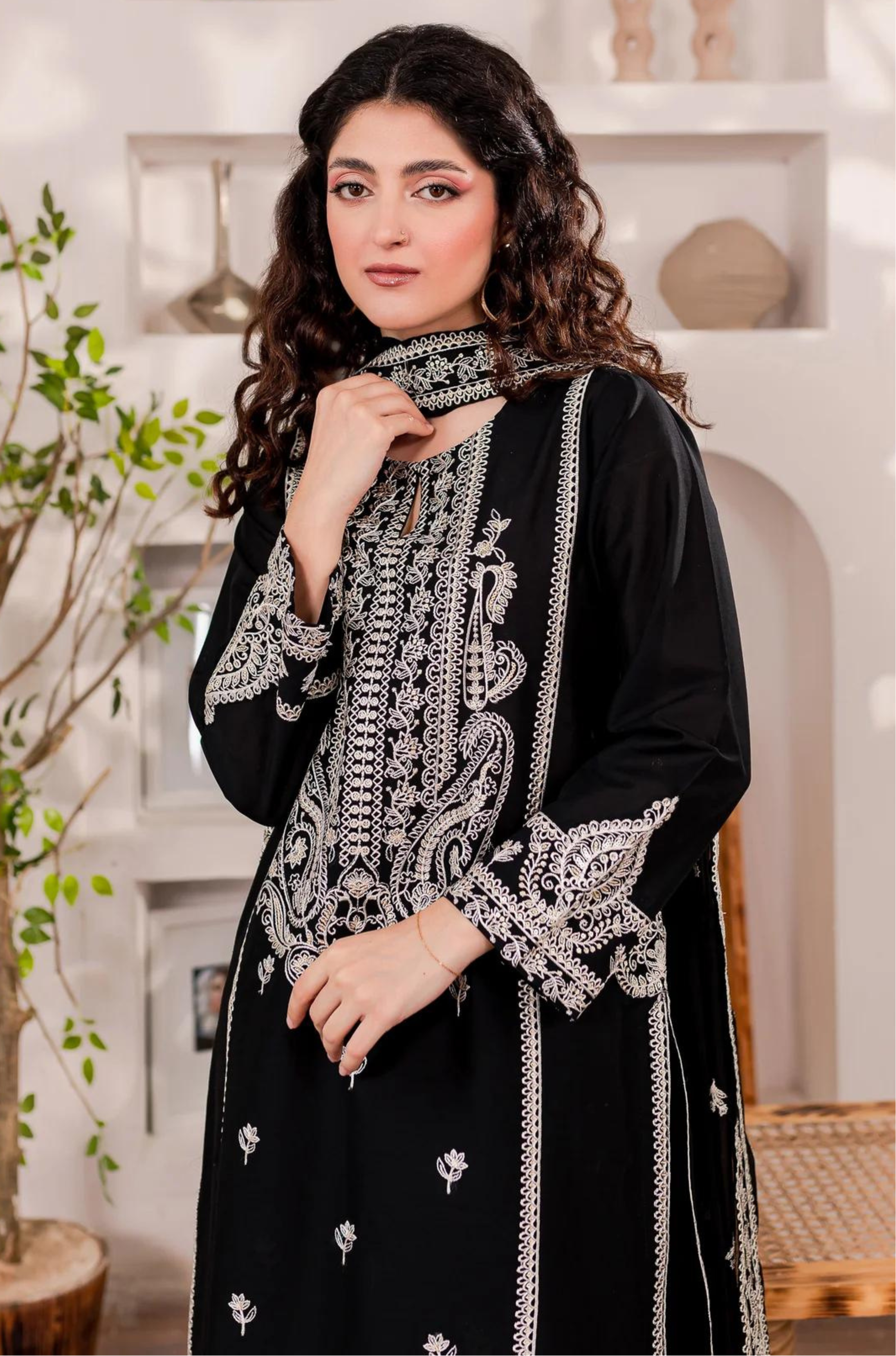 BATIK - 3PC DHANAK EMBROIDERED SHIRT WITH EMBROIDERED ORGANZA DUPATTA AND TROUSER - HZG1340