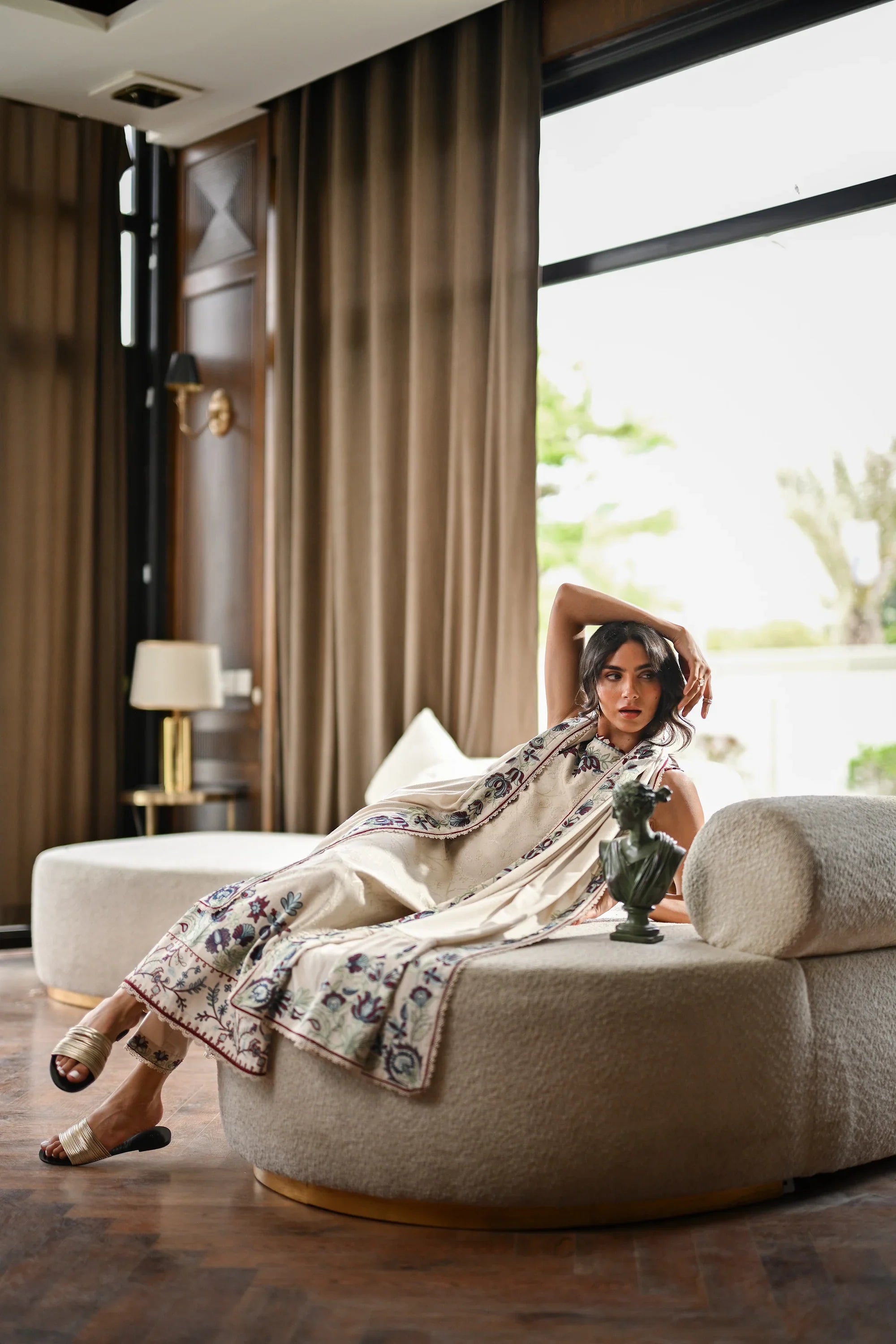 BATIK - 3PC KARANDI EMBROIDERED SHIRT WITH KARANDI EMBROIDERED SHAWL AND TROUSER - HZU2473