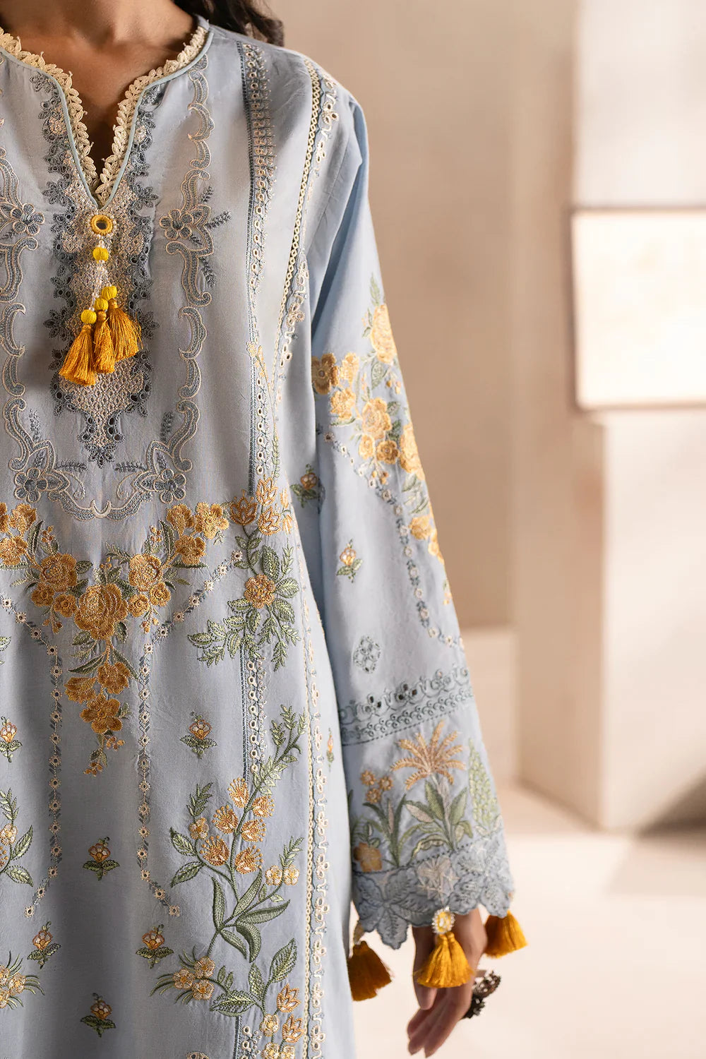 ETHNIC - 3PC LAWN EMBROIDERED SHIRT WITH MANAAR PRINTED DUPATTA AND TROUSER - HZG2213