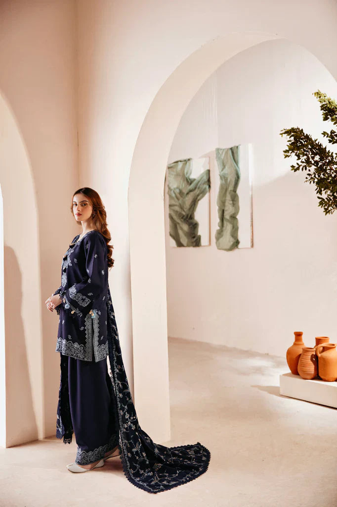 FLORENT - 3PC DHANAK EMBROIDERED SHIRT WITH DHANAK EMBROIDERED SHAWL AND TROUSER - HZG2006