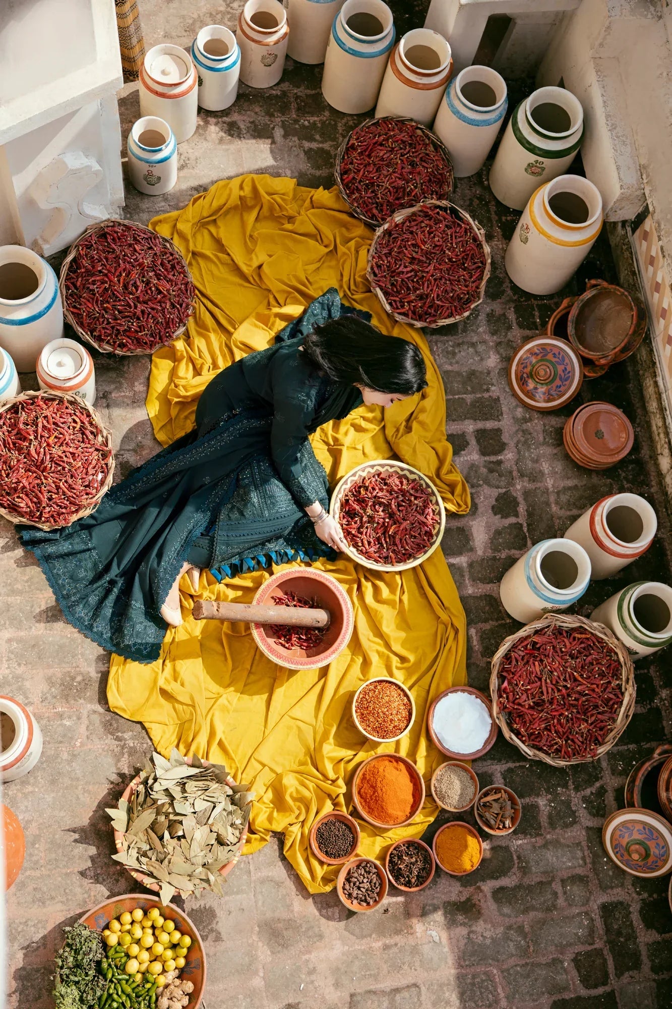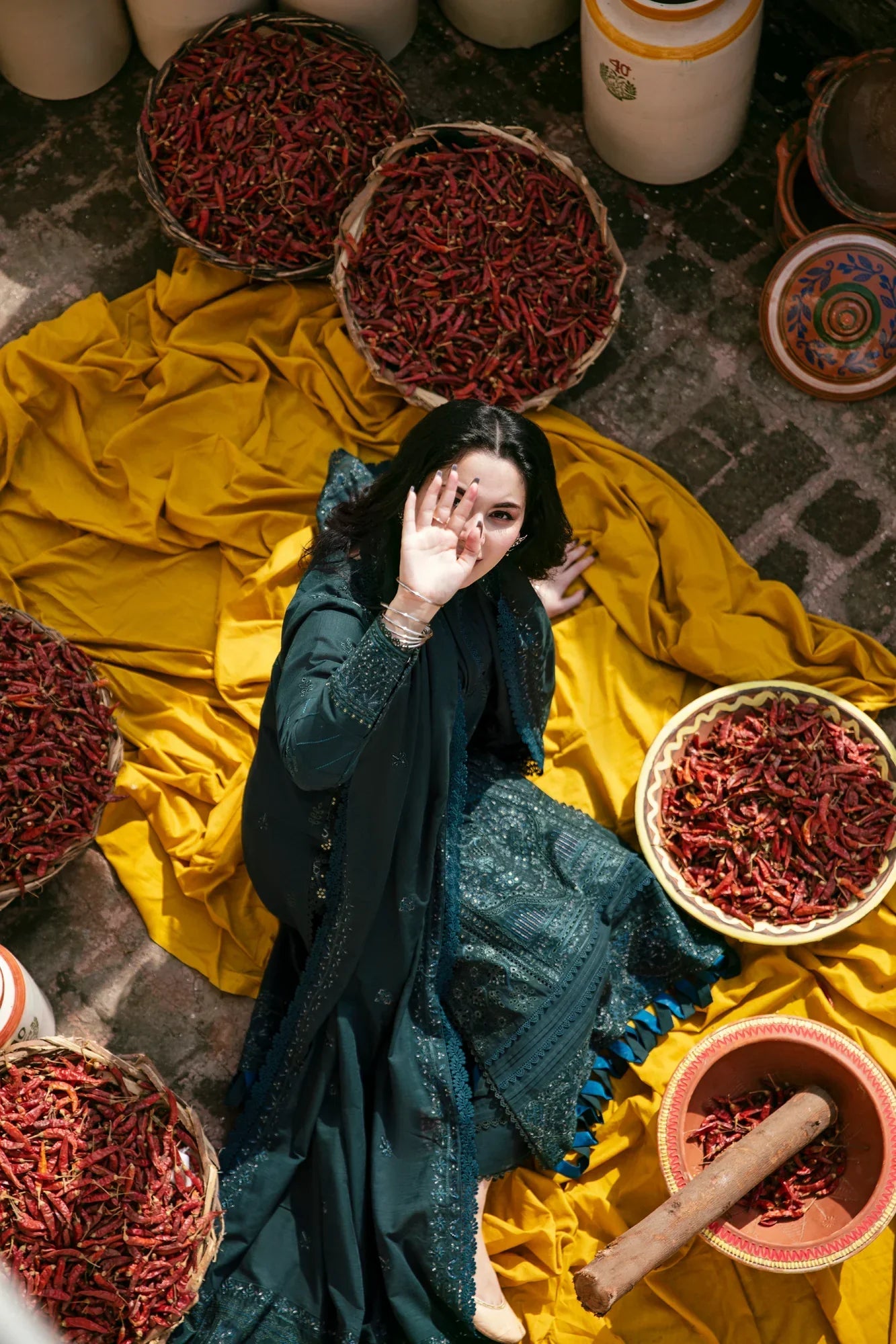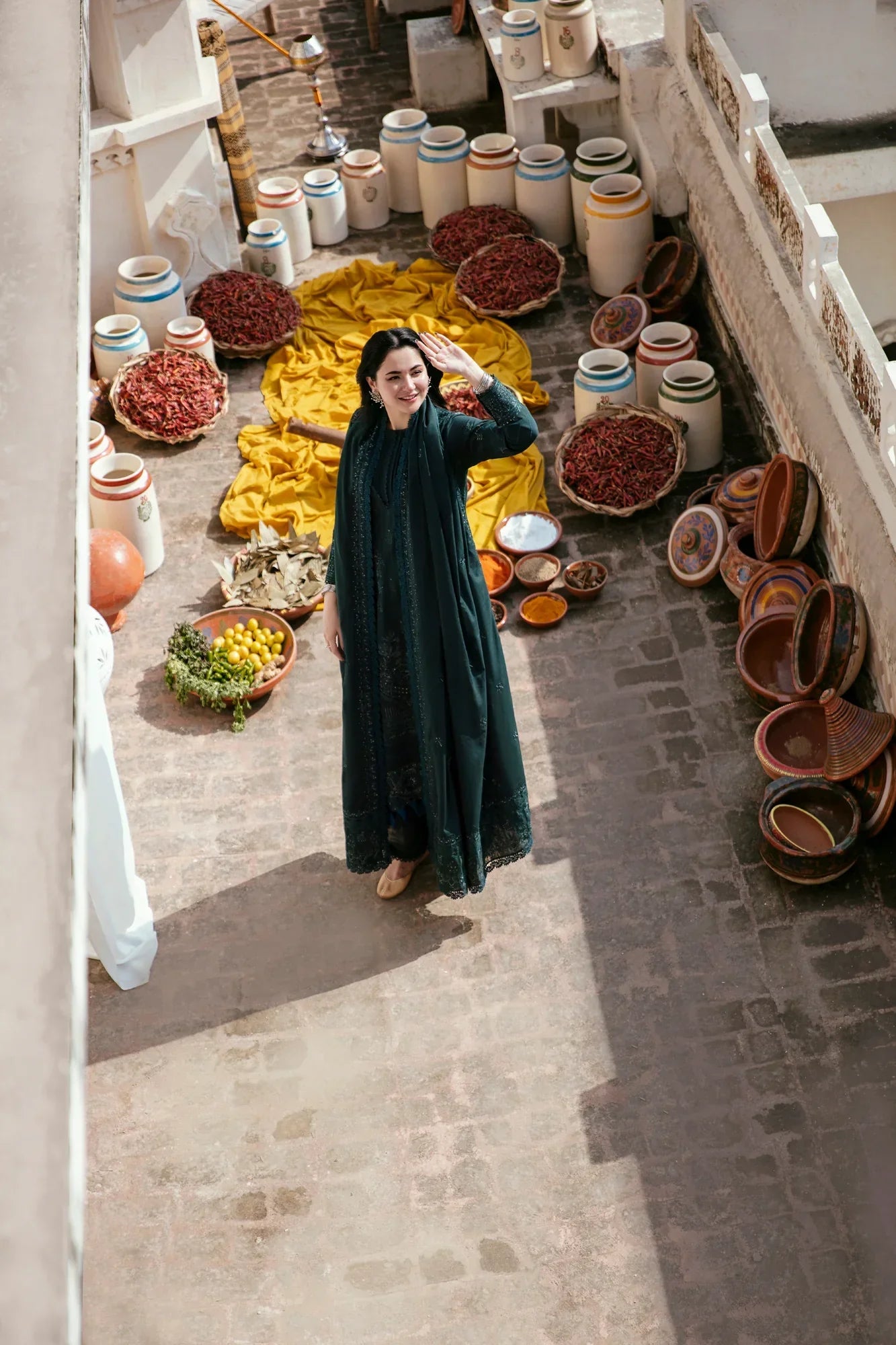 FLORENT - 3PC DHANAK EMBROIDERED SHIRT WITH DHANAK EMBROIDERED SHAWL AND TROUSER - HZG2338