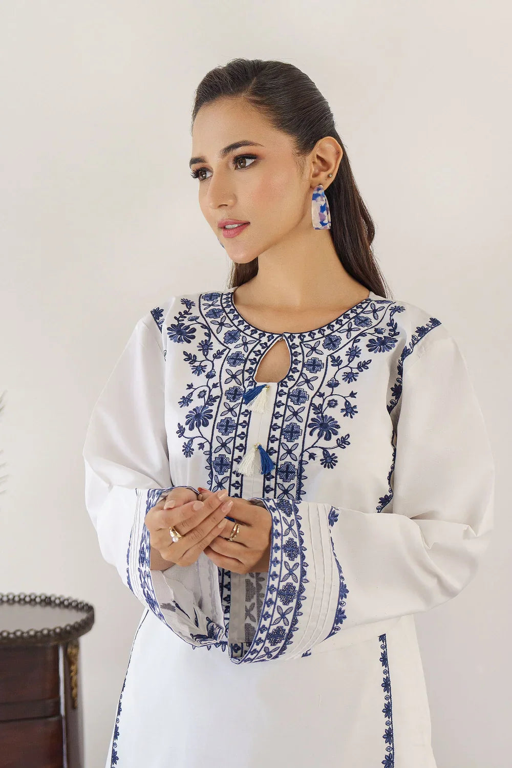 HANNA - 3PC DHANAK EMBROIDERED SHIRT WITH TWILL PRINTED SHAWL AND TROUSER - HZG1779