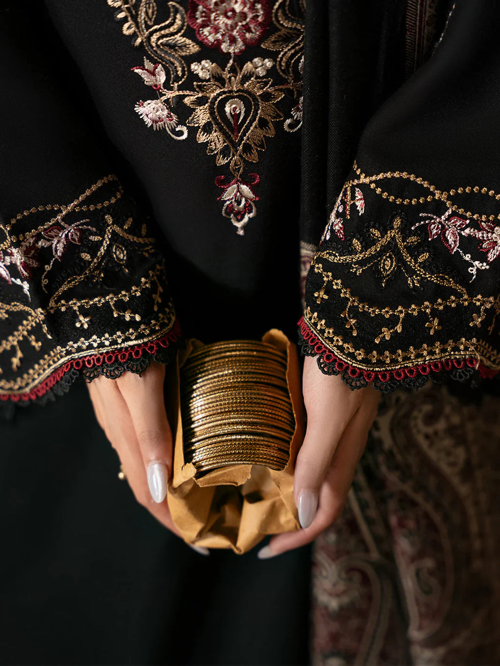 IZEL - 3PC KHADDAR EMBROIDERED SHIRT WITH TWILL PRINTED SHAWL AND TROUSER - HZU2593