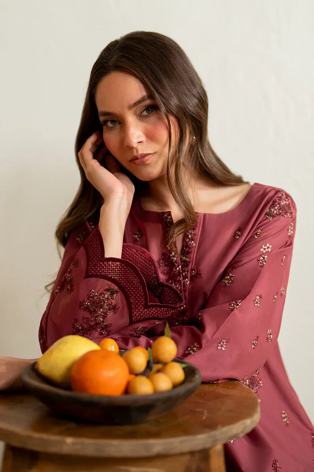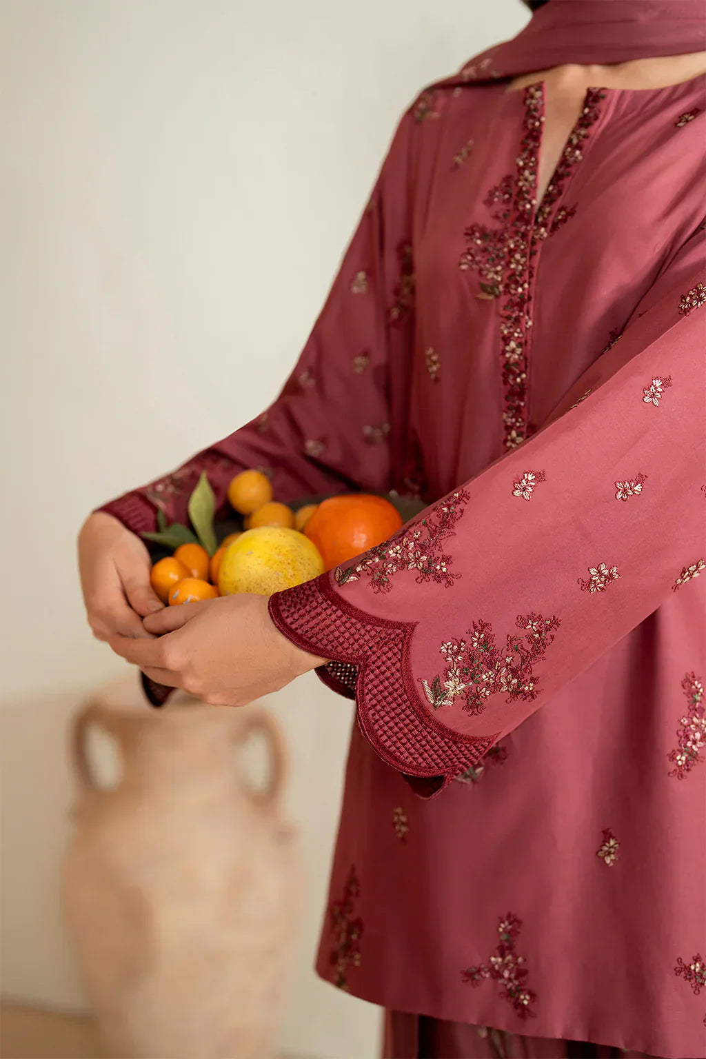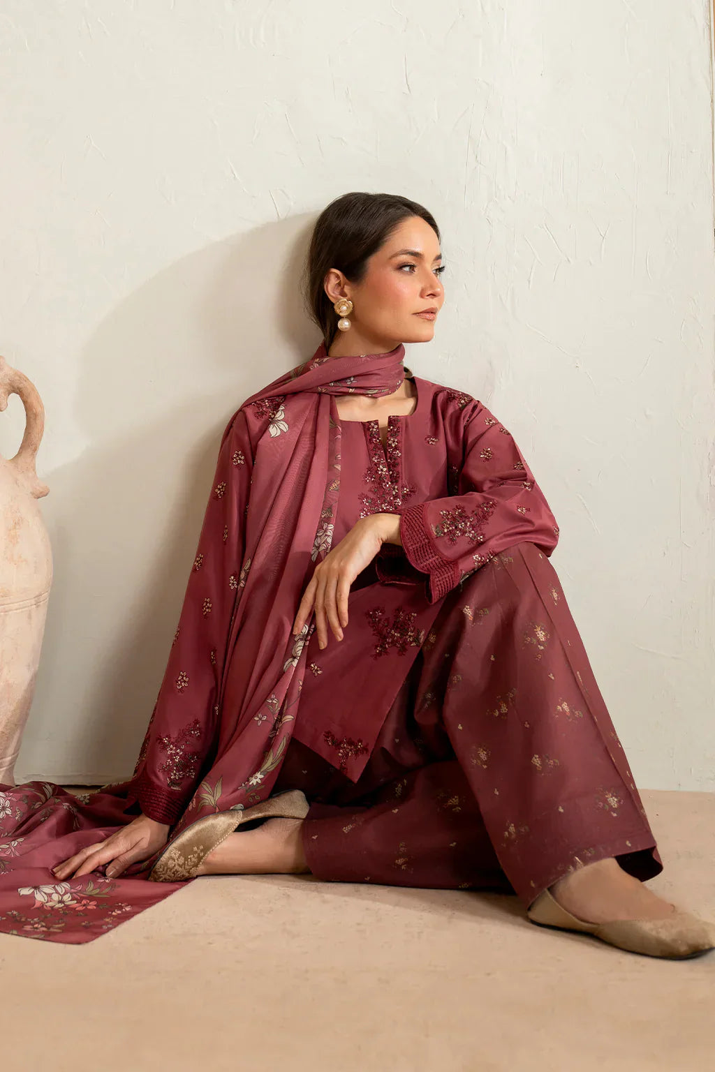 IZNIK - 3PC DHANAK EMBROIDERED SHIRT WITH TWILL PRINTED SHAWL AND TROUSER - HZG2393
