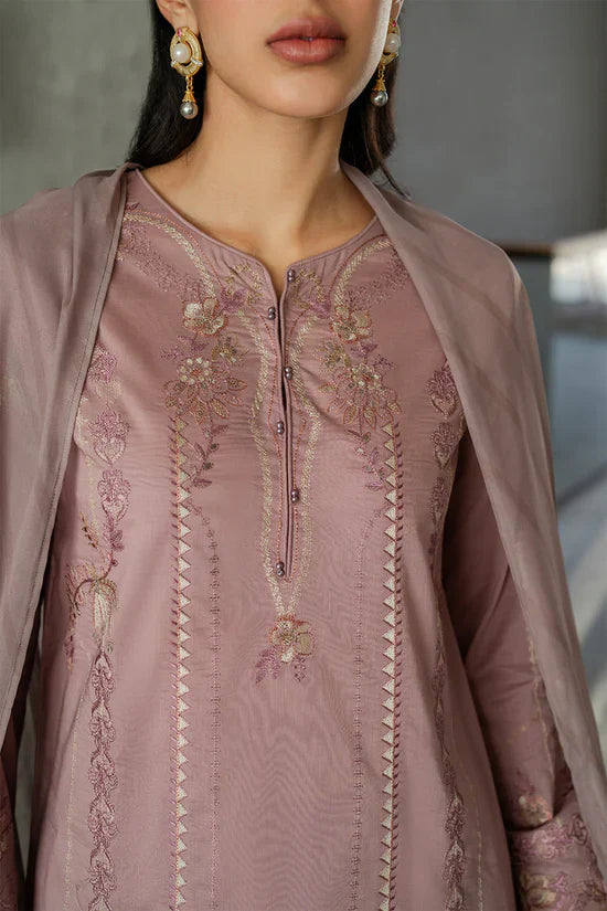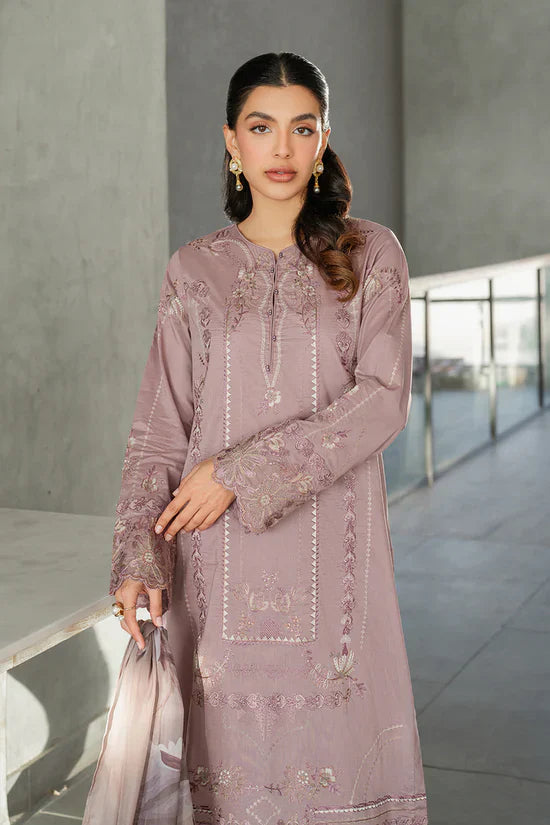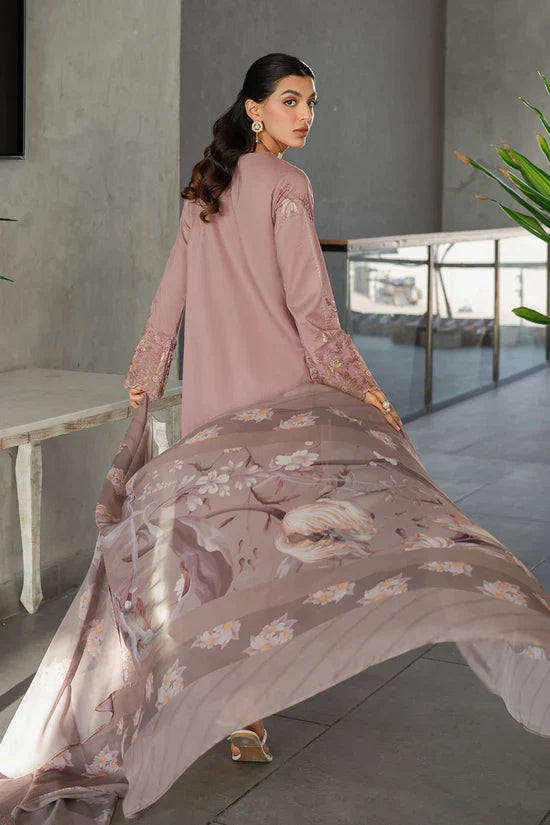 IZNIK - 3PC DHANAK EMBROIDERED SHIRT WITH TWILL PRINTED SHAWL AND TROUSER - HZG2405