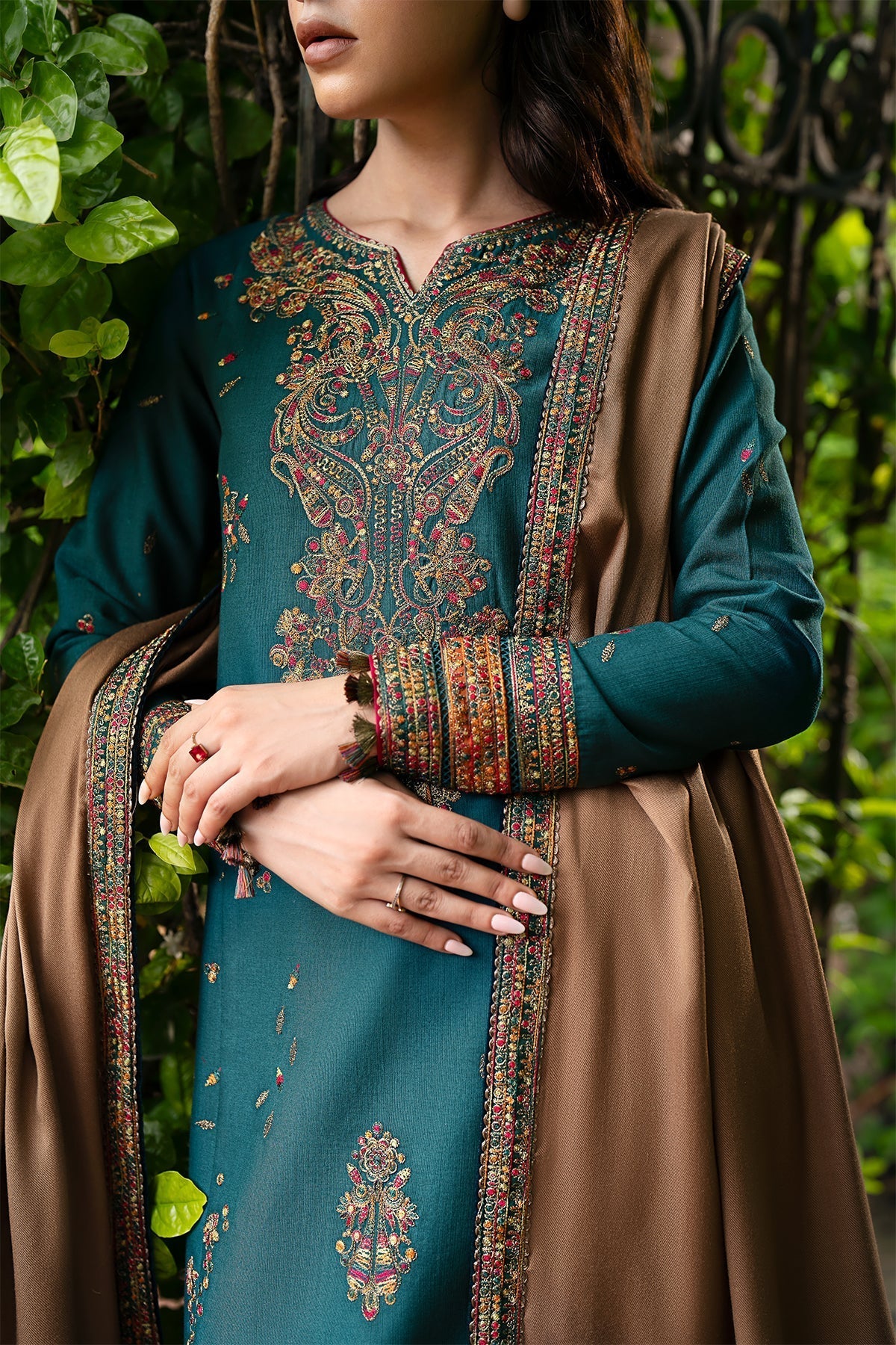 JAZMIN - 3PC DHANAK EMBROIDERED SHIRT WITH DHANAK EMBROIDERED SHAWL AND TROUSER - HZG1844