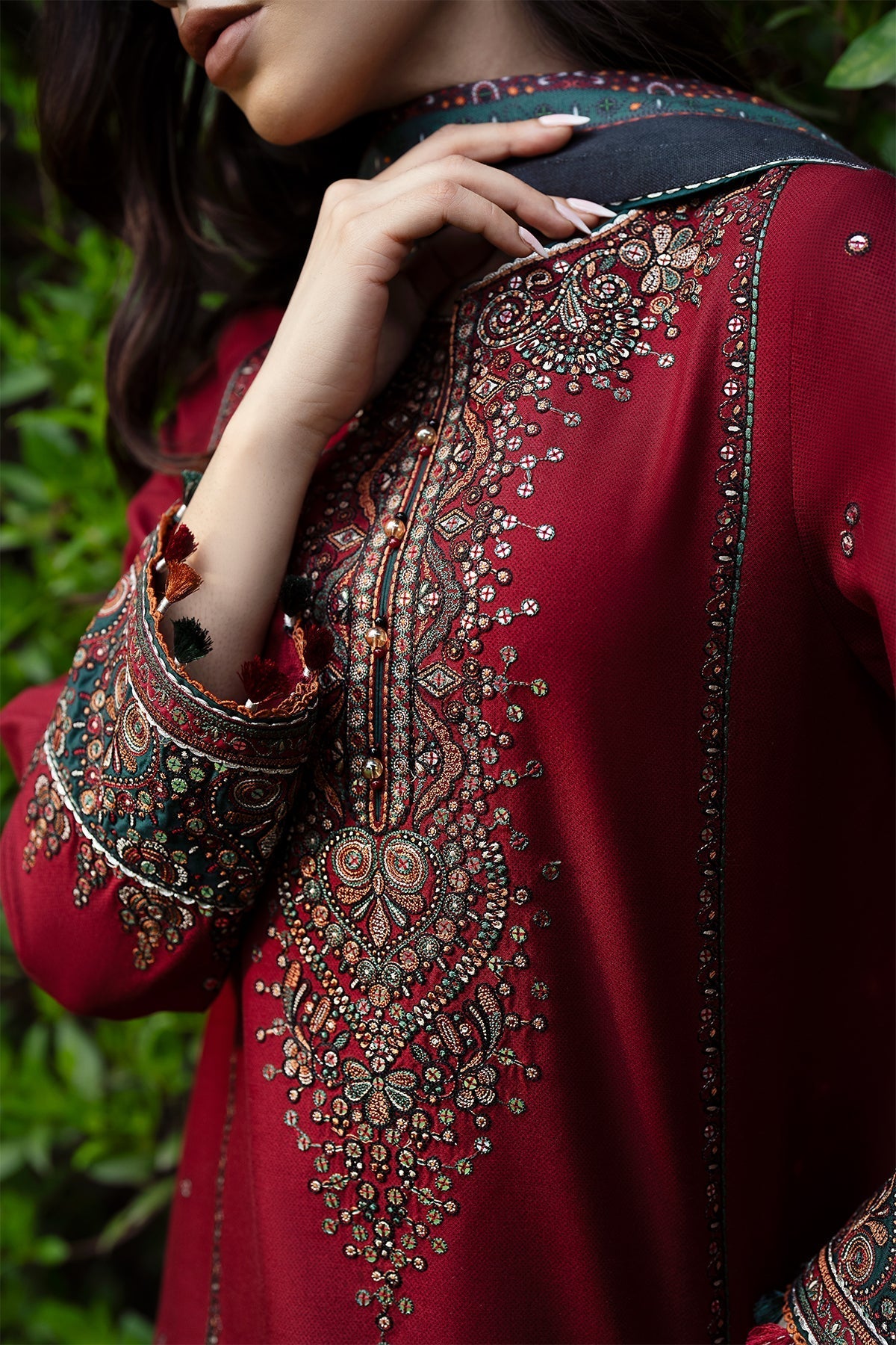JAZMIN - 3PC DHANAK SEQUIN EMBROIDERED SHIRT WITH TWILL PRINTED SHAWL AND TROUSER - HZG1886