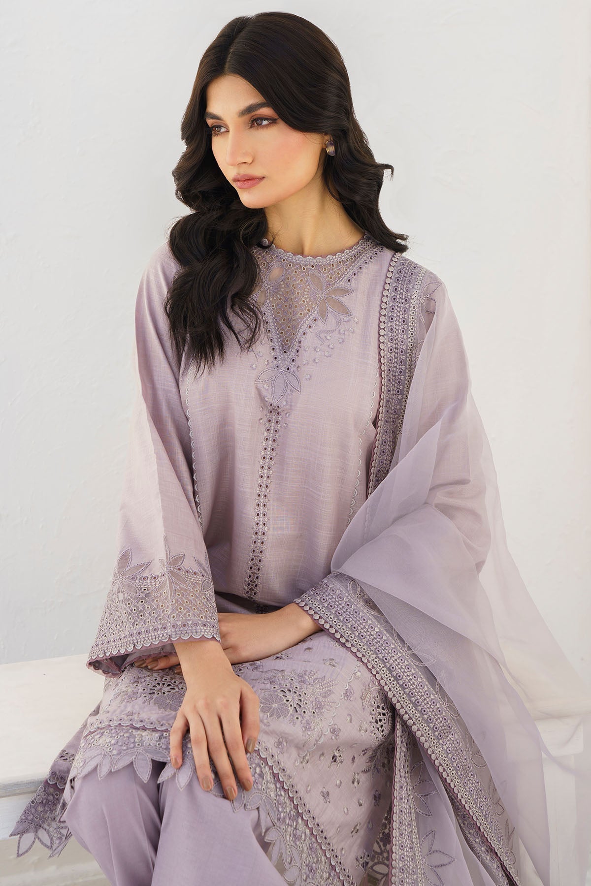 JAZMIN - 3PC LAWN EMBROIDERED SHIRT WITH ORGANZA EMBROIDERED DUPATTA AND TROUSER - HZG1587