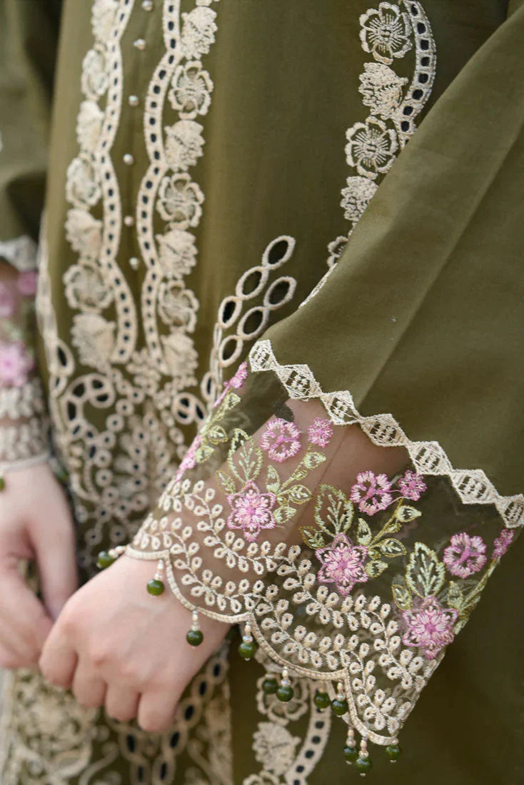 LIBAAS - 3PC KARANDI EMBROIDERED SHIRT WITH KARANDI EMBROIDERED SHAWL AND TROUSER - HZU2462
