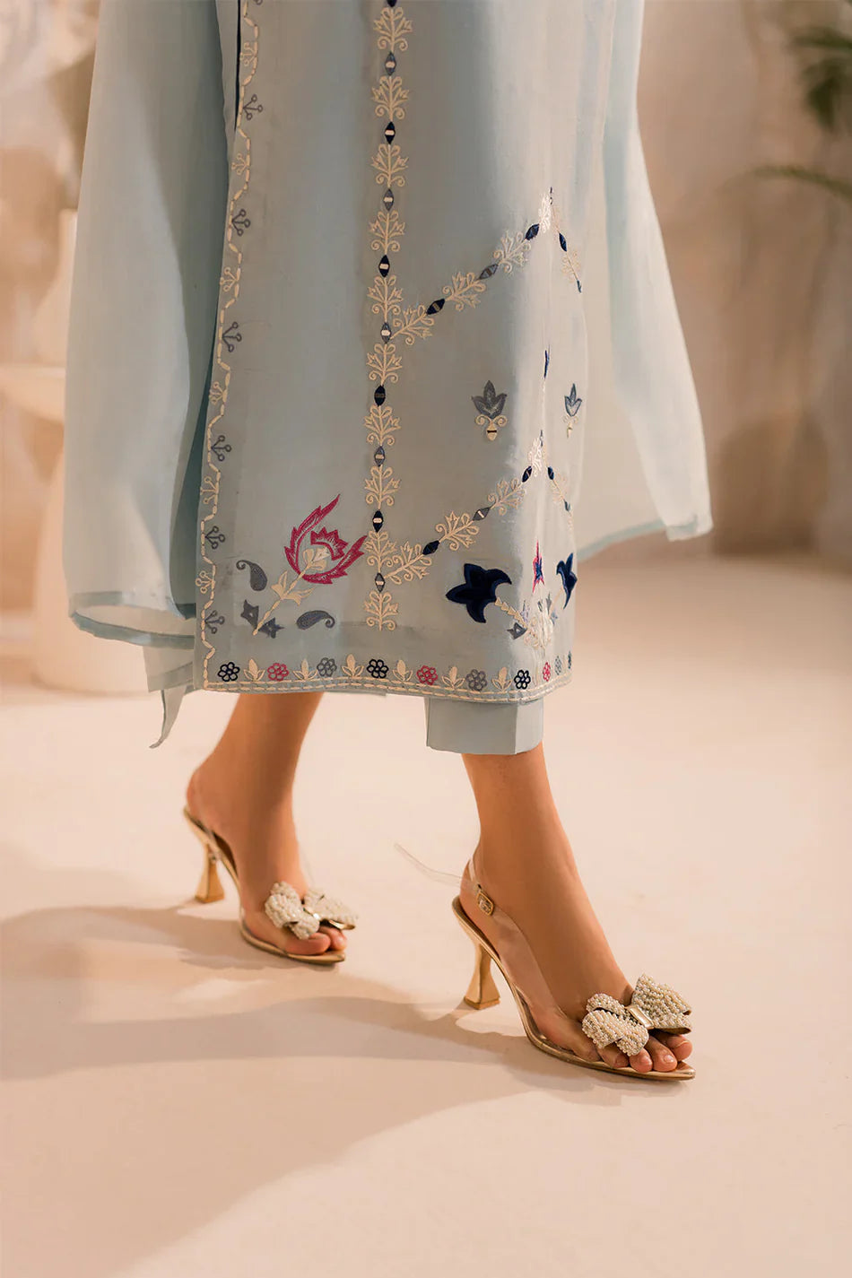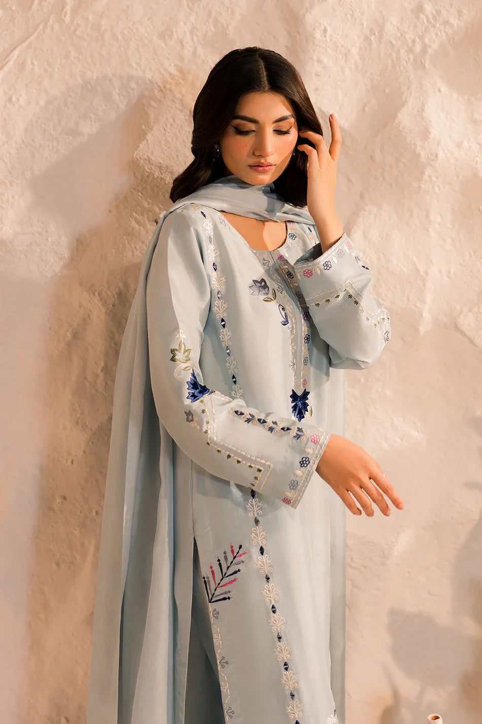 Lawn Chikankaari Embroidered Shirt Lawn Chikankaari Embroidered Sleeves Khadi Net Embroidered Dupatta Lawn Dyed Back Lawn Dyed Trouser Unstitched 3PC Dress