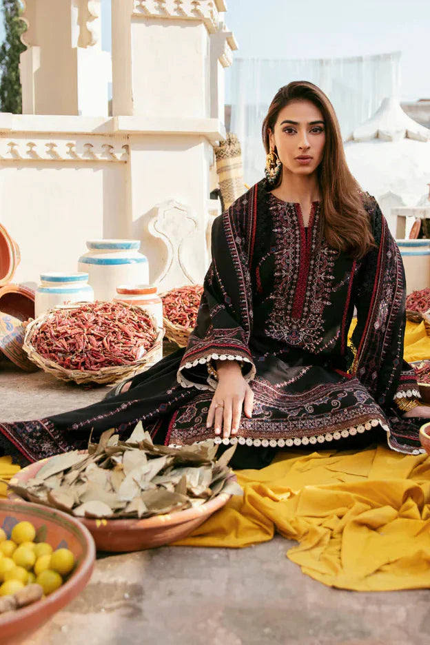 QALAMKAR - 3PC DHANAK EMBROIDERED SHIRT WITH CHIFFON EMBROIDERED DUPATTA AND TROUSER - HZG2334