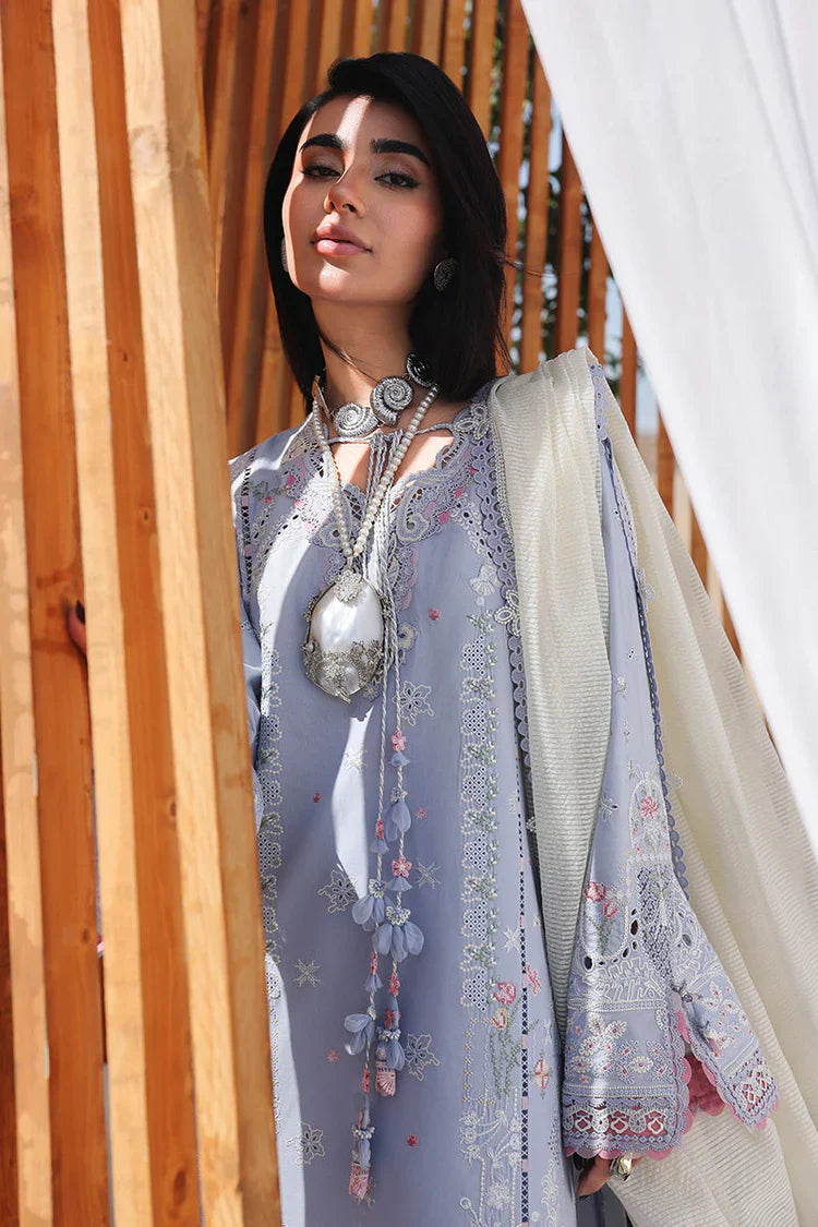 Lawn Chikankaari Embroidered Shirt Embroidered Daman Patch Lawn Embroidered Sleeves Khaddi Net Embroidered Dupatta Lawn Dyed Back Lawn Dyed Trouser Unstitched 3PC Dress
