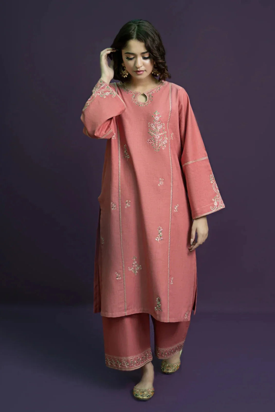 URGE - 2PC DHANAK EMBROIDERED SHIRT WITH EMBROIDERED TROUSER - HZG1896