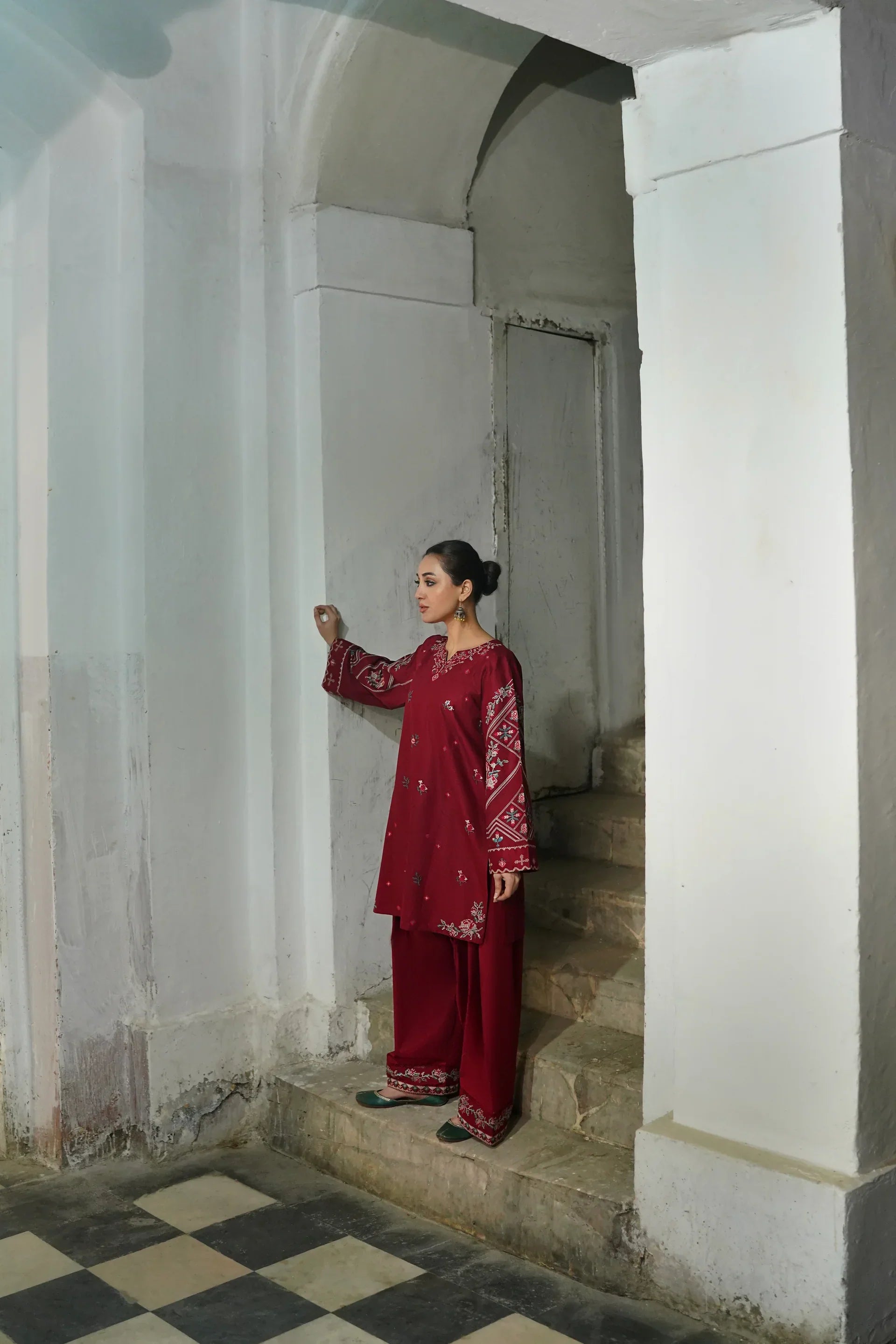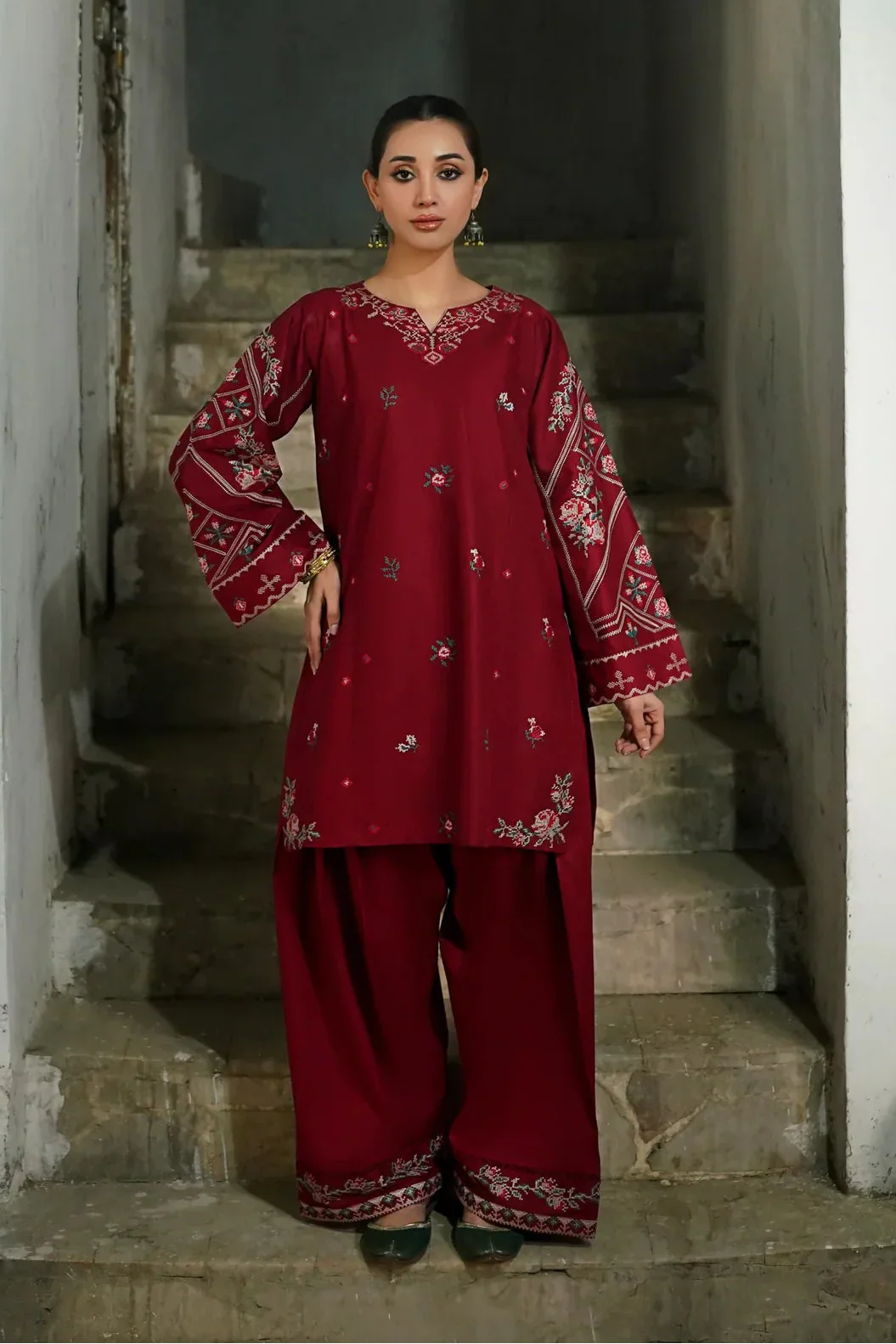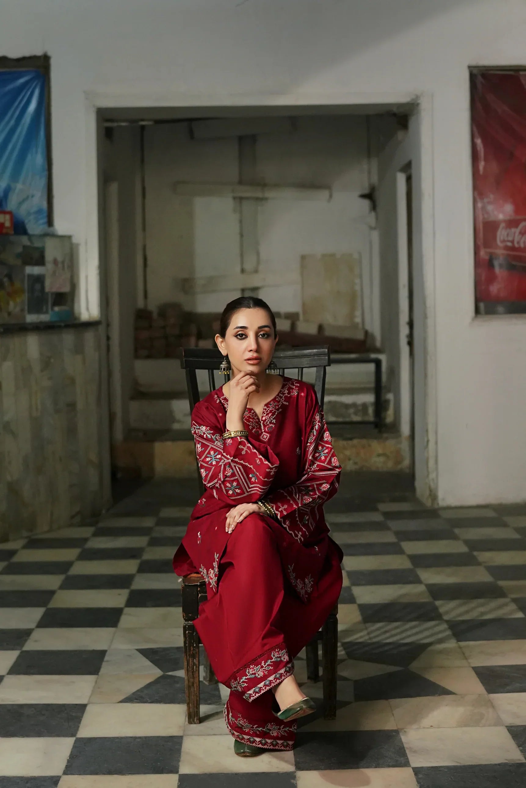 URGE - 2PC DHANAK EMBROIDERED SHIRT WITH DHANAK EMBROIDERED TROUSER - HZG2325