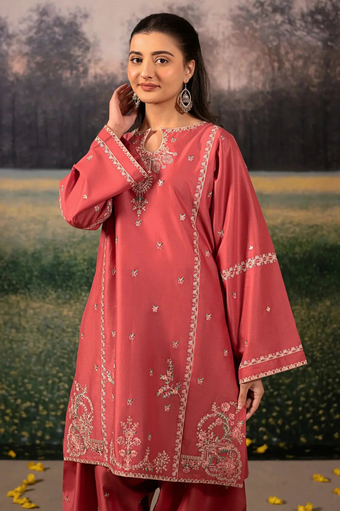 URGE - 3PC DHANAK EMBROIDERED SHIRT WITH TWILL PRINTED SHAWL AND TROUSER - HZG2385