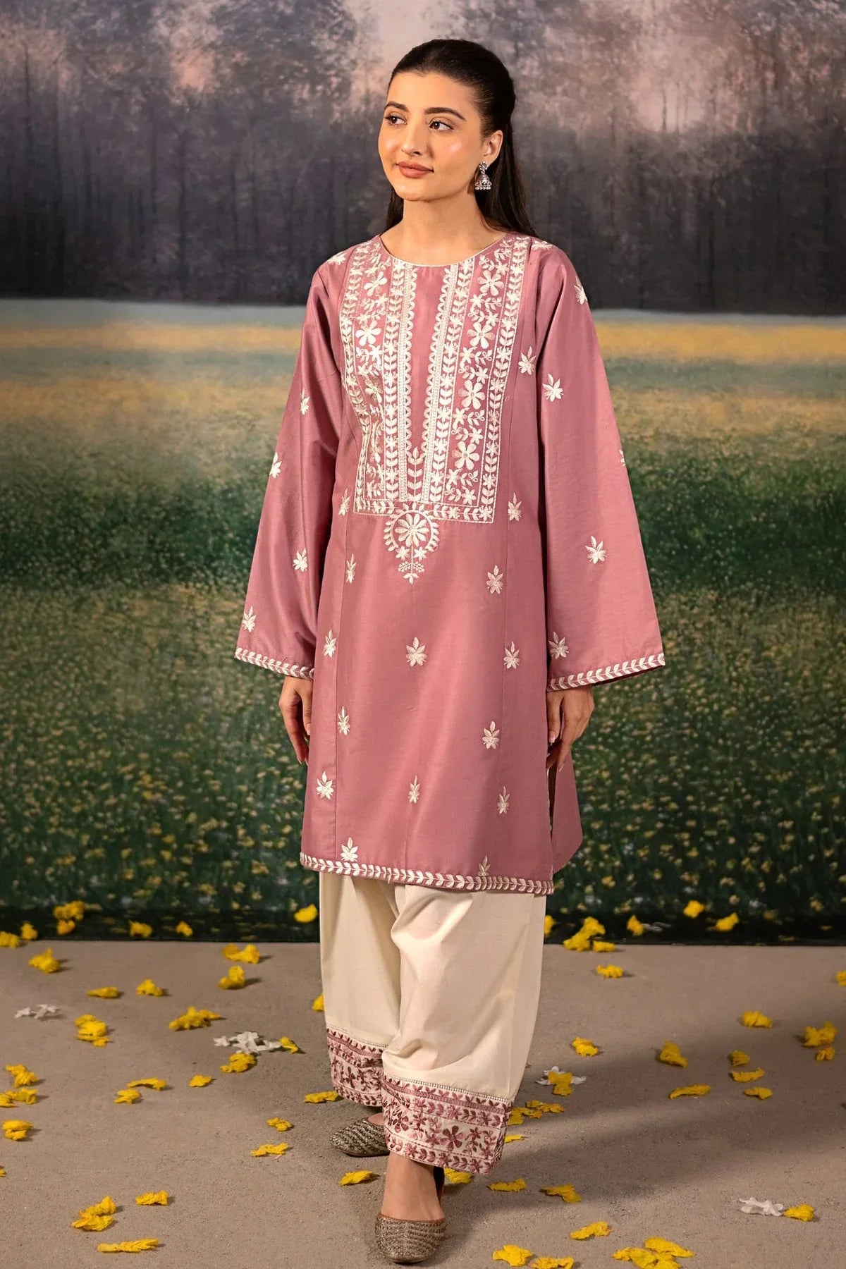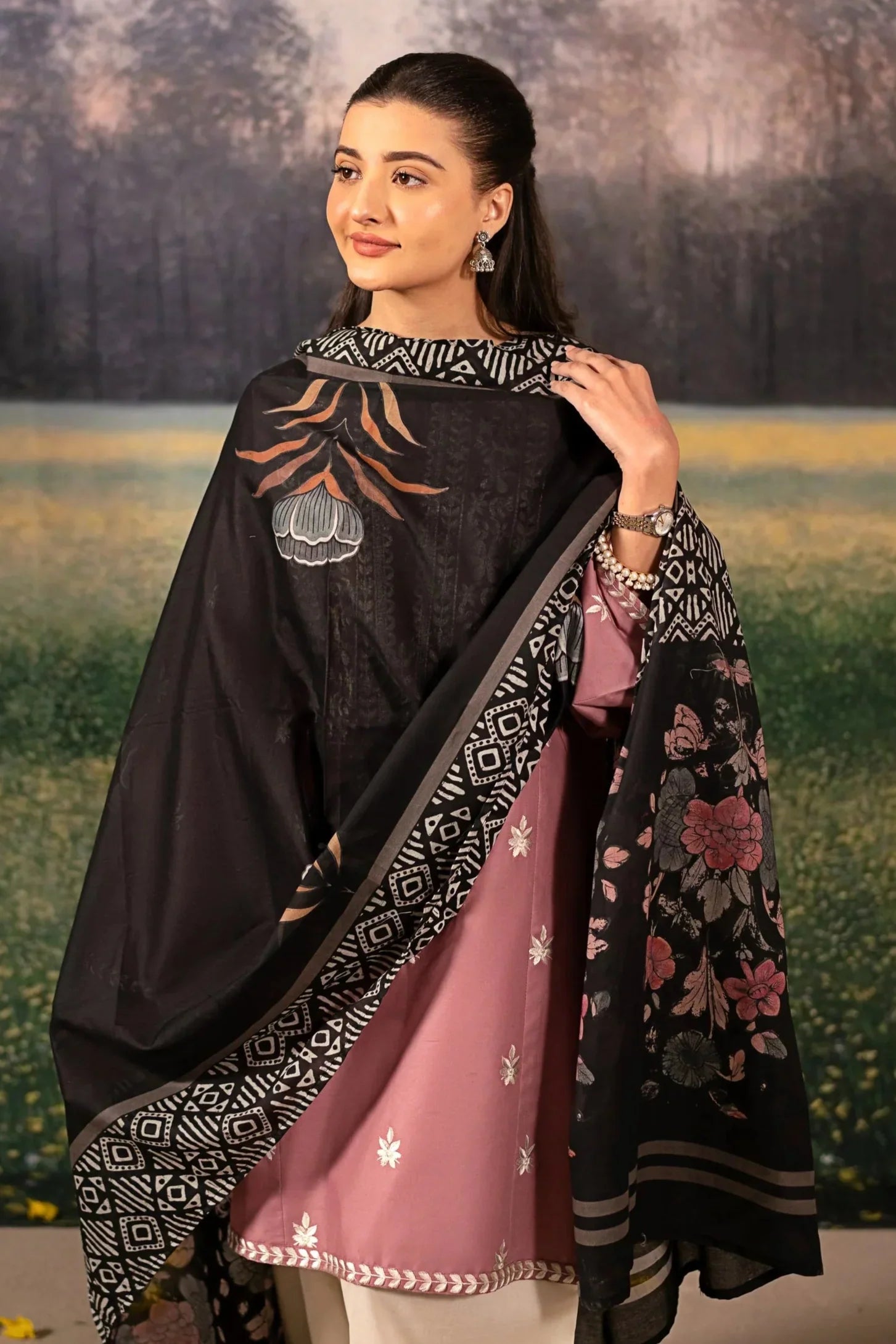 URGE - 3PC DHANAK EMBROIDERED SHIRT WITH TWILL PRINTED SHAWL AND TROUSER - HZG2390