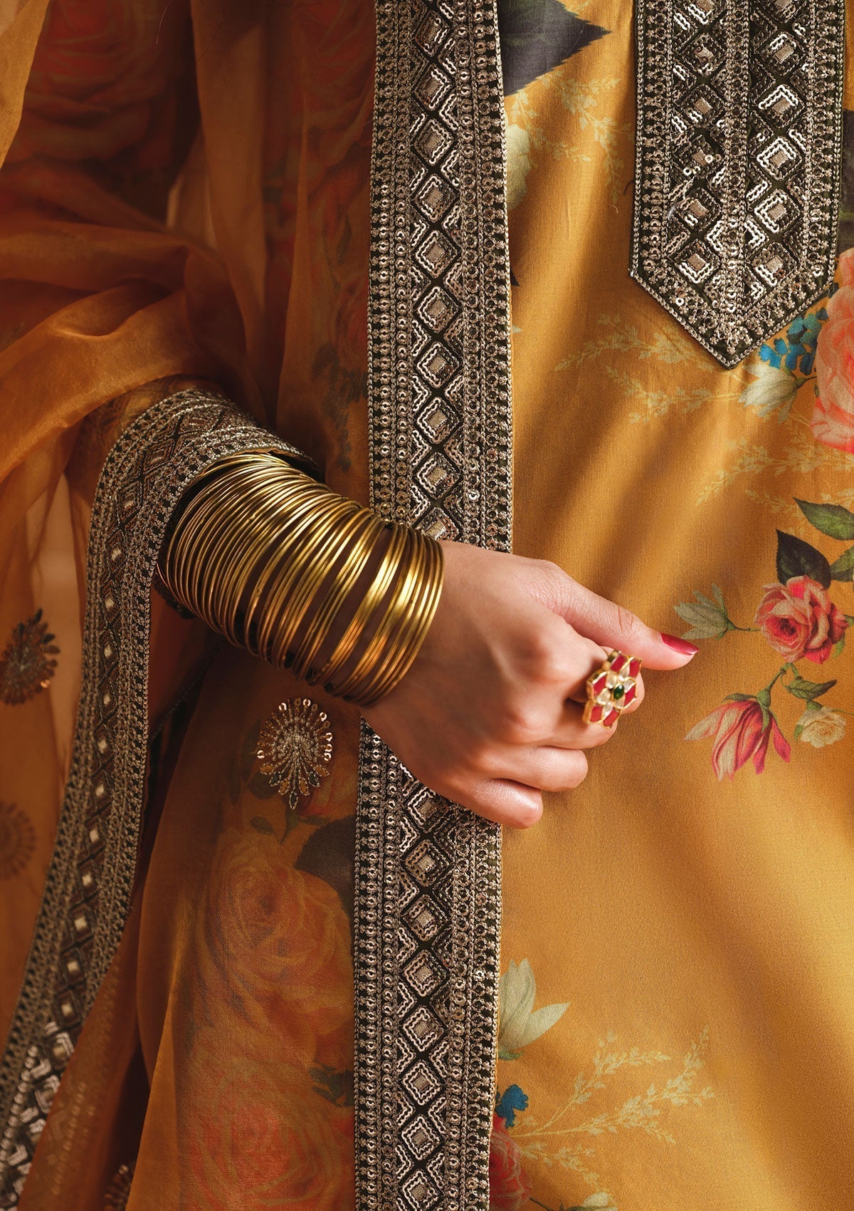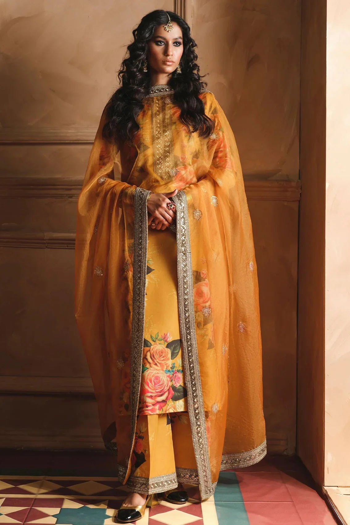ZAINAB CHOTTANI - 3PC SHAMOZE SILK PRINTED EMBROIDERED SHIRT WITH SILK PRINTED EMBROIDERED DUPATTA AND TROUSER - HZU590