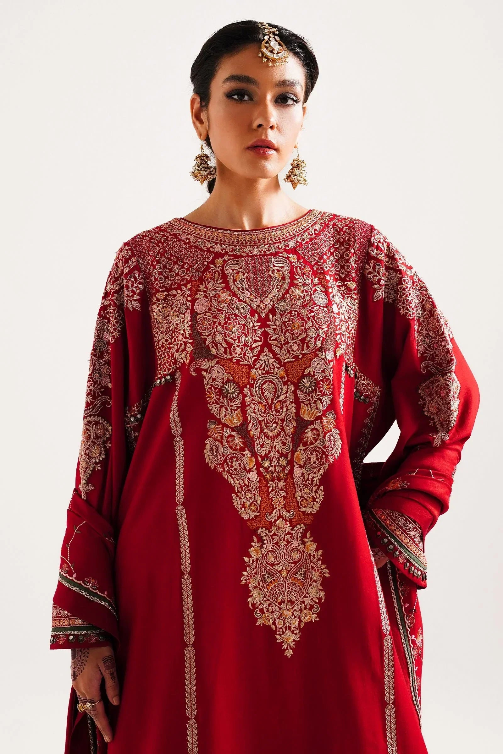 ZARA SHAH JAHAN - 3PC DHANAK EMBROIDERED SHIRT WITH DHANAK EMBROIDERED SHAWL AND TROUSER - HZG2448