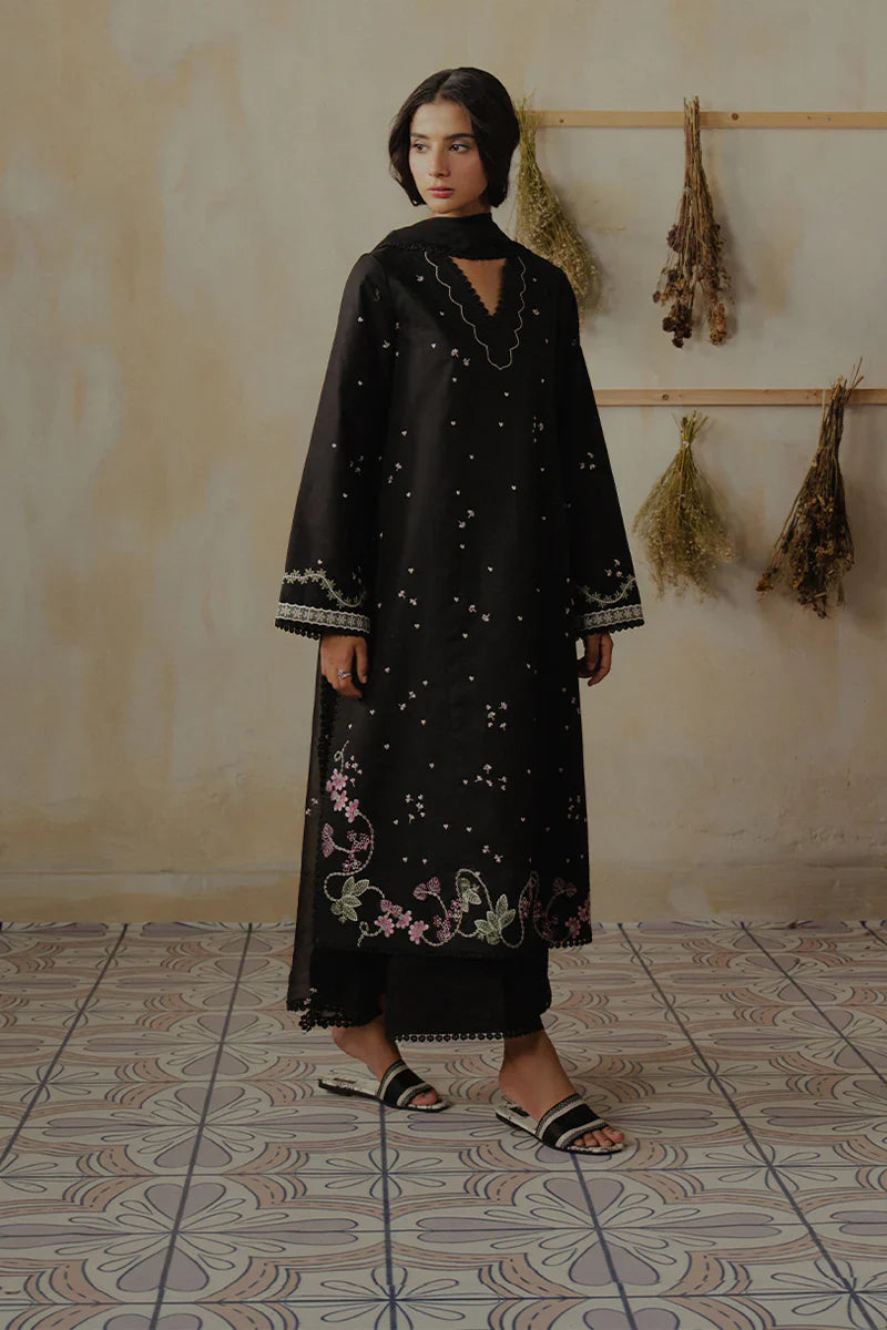 ZARPASH - 3PC DHANAK EMBROIDERED SHIRT WITH CHIFFON EMBROIDERED DUPATTA AND TROUSER - HZG2607